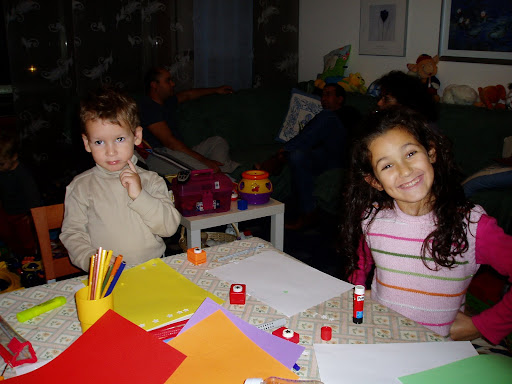 E siccome non trovo mai nessuna per scrappare insieme ho pensato bene di mettere un po di materiale a disposizione di nipotini e Francesco e vedere cosa combinavano, devo dire che Ilaria era lanciatissima, non ho fotografato quello che h realizzato ma è stata bravissima! è bastato darle forbici creative, punzoni, fogli colorati, matite e colla e via!!!! altro che copiatura di sketch!