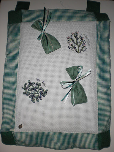 Ovvero anche Ana Paula ha ricevuto il suo regalo e quindi adesso lo mostro, intento partiamo dicendo che lei aveva scelto come tema le erbe aromatiche, alla fine mi è venuta una sfolgorante idea, ovvero quella di prepara un pannellino a cui lei poi possa appendere i mazzetti di erbe aromatiche oppure dei sacchettini, alla fine ho convinto Giuliana fare anche lei la stessa cosa, abbiamo scelto schemi JJ per le erbe e assemblaggi simili del pannellino (ma il suo è più bello del mio"!) ed ecco comunque la foto, ma nel dubbio potesse sembrare una ciofeca ho aggiunto anche un libro di ricette! non si sa mai .......