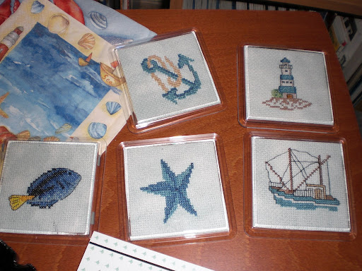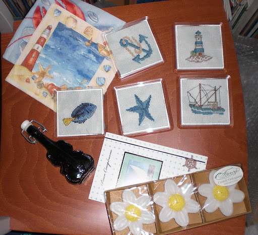 AnaPaula mi ha regalato dei bellissimi sottobicchieri in tema marino che ieri insieme ad altri regali hanno trovato il loro posto nella casa del mare e .... stan benissimo!